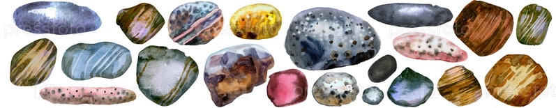 Ручной рисунок изолированной красочной акварельной границы камней на белом фоне