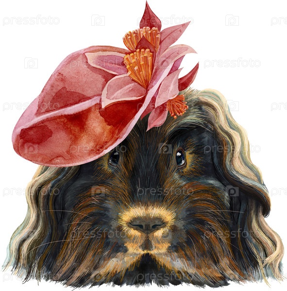 Симпатичная морская свинка в красной шляпе. Свинья для графики на футболках. Акварель мериносовая морская свинка
