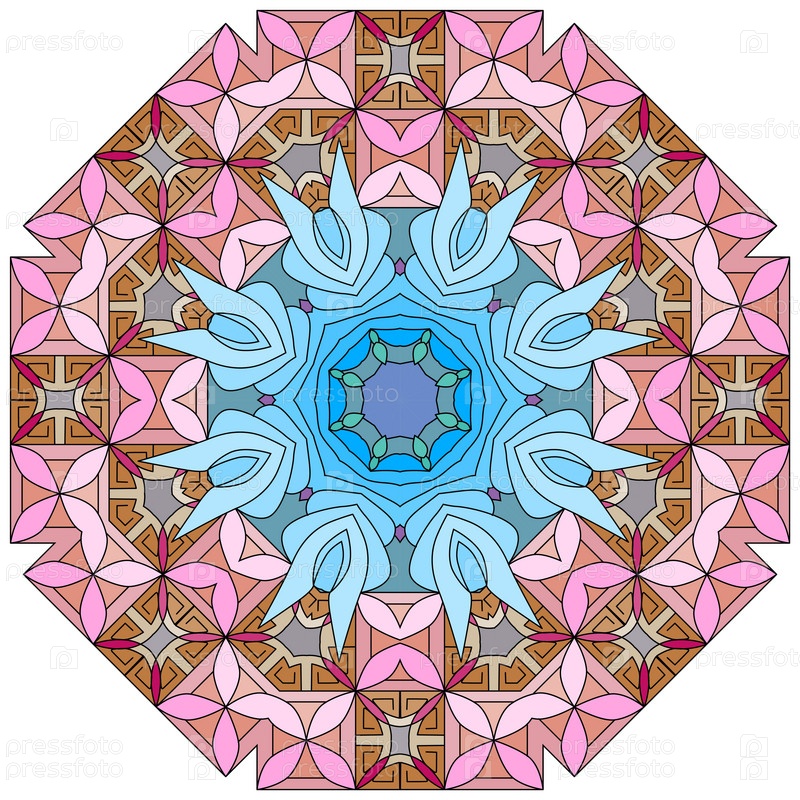 Декоративный круглый орнамент. Необычная форма цветка. Восточный вектор, схемы антистрессовой терапии. Переплетение элементов дизайна. Вектор логотипов йоги