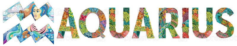 Знак зодиака Водолей, астрологический концепт-арт для окраски. Дизайн татуировки. Набор цветов и контуров