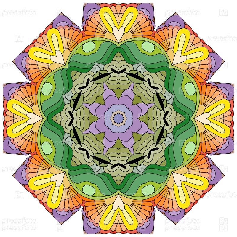Декоративный круглый орнамент. Необычная форма цветка. Восточный вектор, схемы антистрессовой терапии. Переплетение элементов дизайна. Вектор логотипов йоги