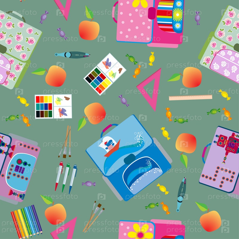 Бесшовный школьный рисунок. Фон со школьными предметами