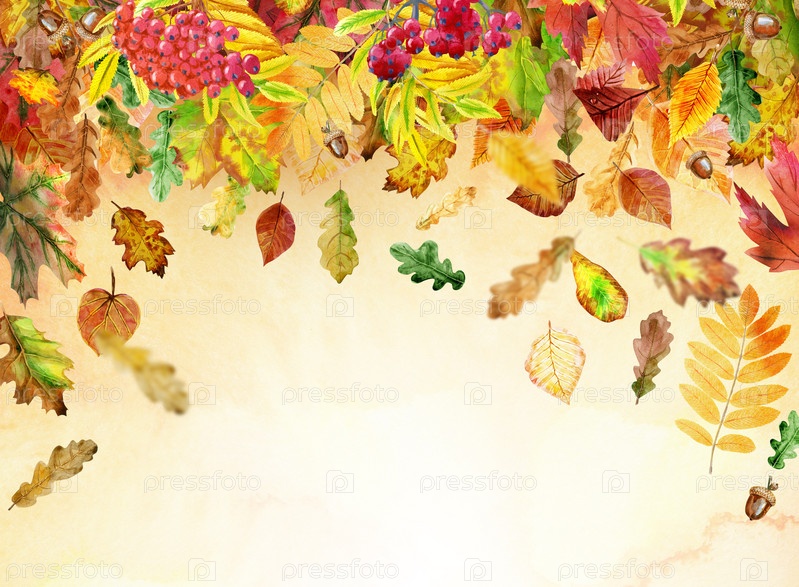 Фон с красными, оранжевыми, коричневыми и желтыми падающими осенними листьями
