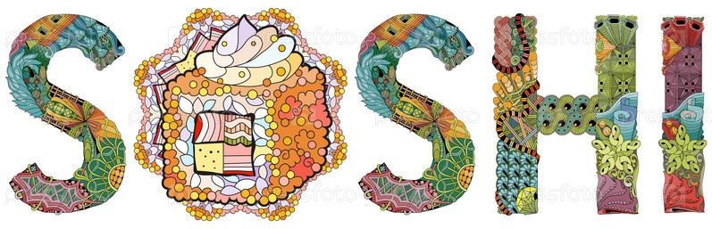 Художественный дизайн ручной росписи.Ручная рисование слов SUSHI для футболок и других украшений