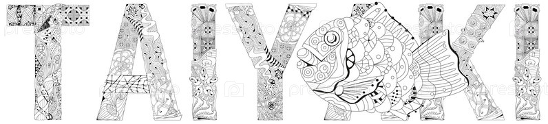 Слово ТАЙЯКИ с падающими листьями. векторный декоративный объект zentangle