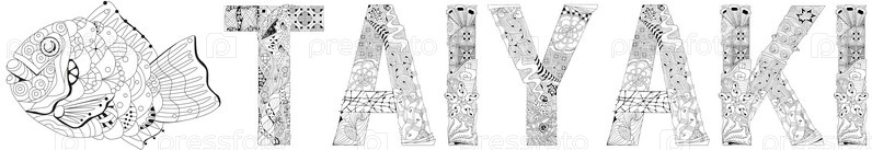 Слово ТАЙЯКИ с падающими листьями. векторный декоративный объект зэнтгелл для окраски