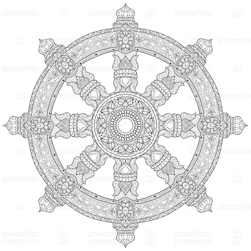 Колесо Дхармы, Дхармачакра. Символ учения Будды о пути к просветлению, освобождению от кармы