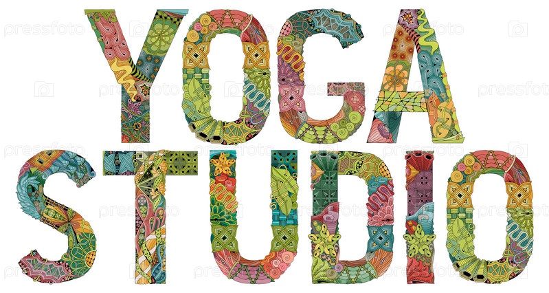 Художественный дизайн ручной росписи. Ручная рисование слов YOGA STUDIO для футболок и других украшений