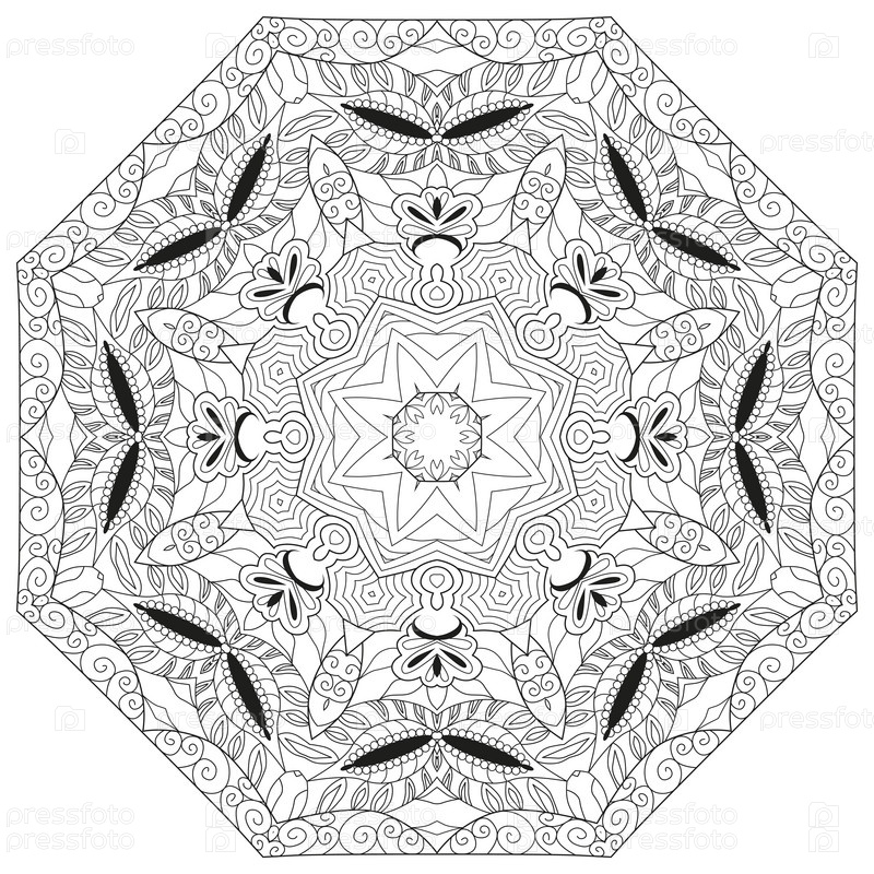 Векторные текстуры книги раскраски для взрослых. Художественный дизайн ручной росписи. Антистрессовая раскраска для взрослых. Черно-белая ручная иллюстрация для раскраски