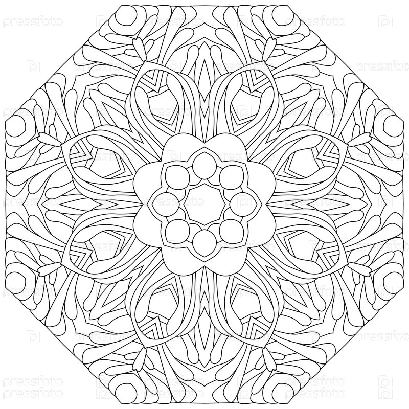 Круговой орнамент ручной работы для раскраски страницы