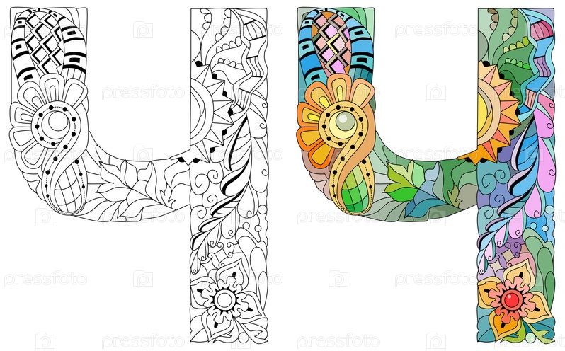 Русский алфавит кириллица Заглавная буква CH. Векторальная иллюстрация Набор цветов и контуров