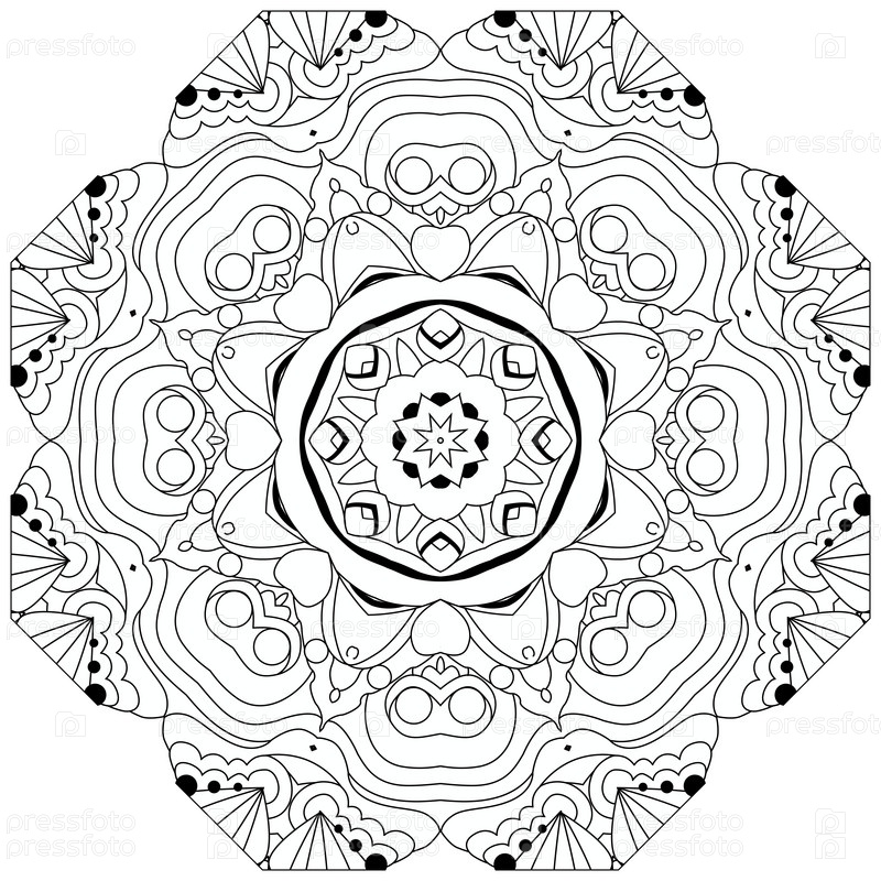 Круговой орнамент ручной работы для раскраски страницы