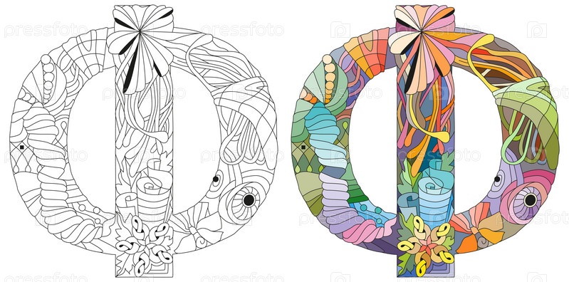 Русский алфавит кириллическая заглавная буква F. Векторальная иллюстрация Набор цветов и контуров