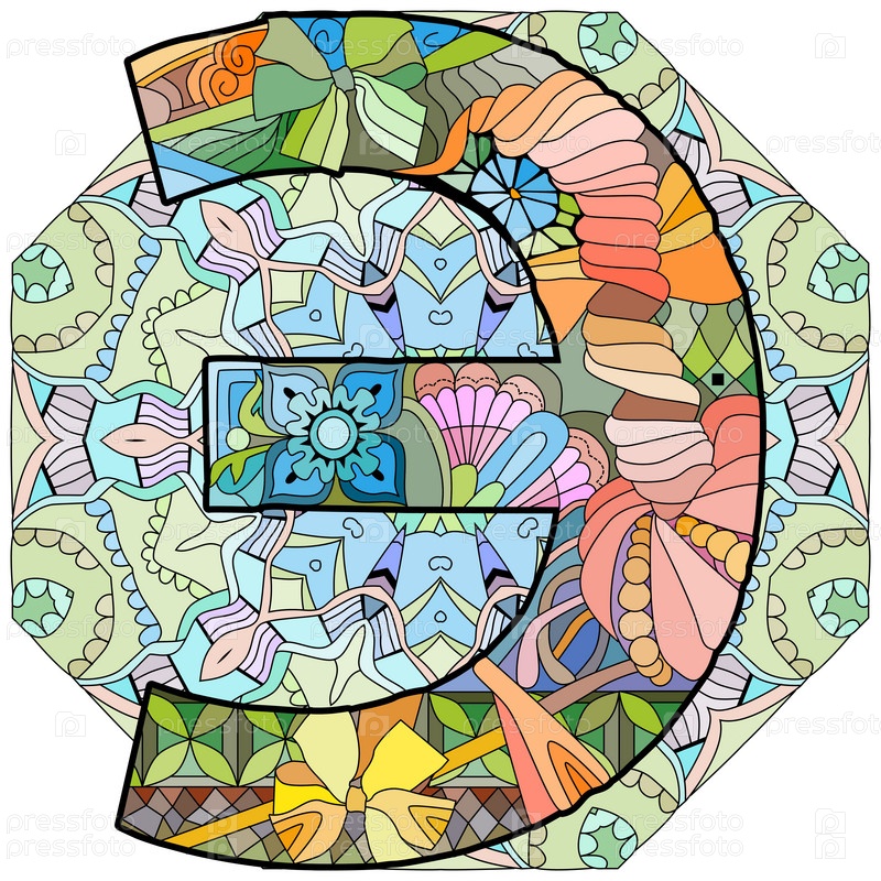 Русский алфавит кириллическая заглавная буква Эй на мандале. Векторная иллюстрация