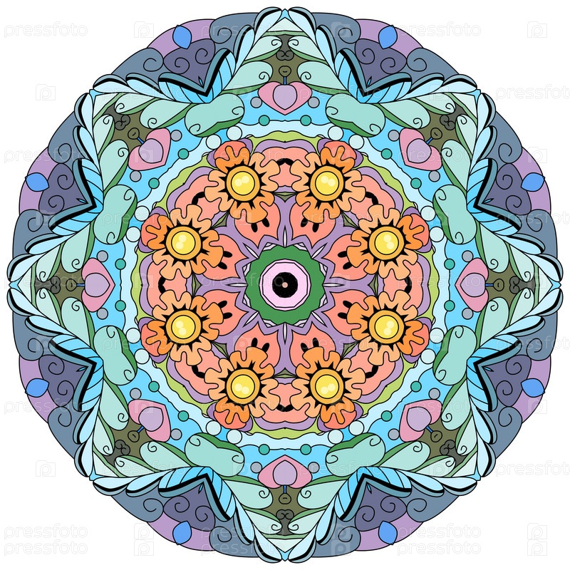 Декоративный круглый орнамент. Необычная форма цветка. Восточный вектор, схемы антистрессовой терапии. Переплетение элементов дизайна. Вектор логотипов йоги