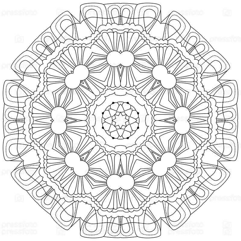 Круговой орнамент ручной работы для раскраски страницы