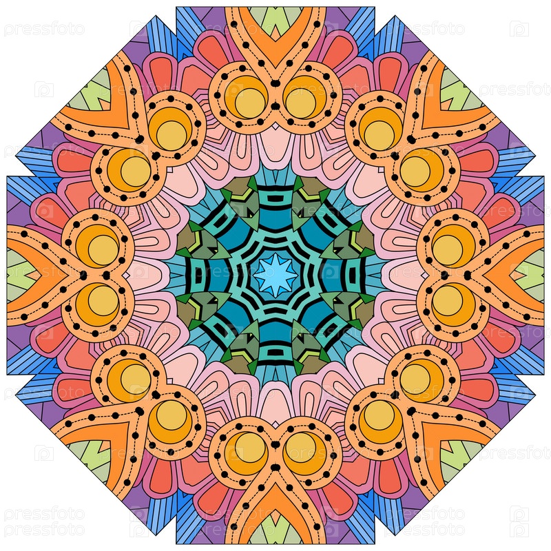 Декоративный круглый орнамент. Необычная форма цветка. Восточный вектор, схемы антистрессовой терапии. Переплетение элементов дизайна. Вектор логотипов йоги