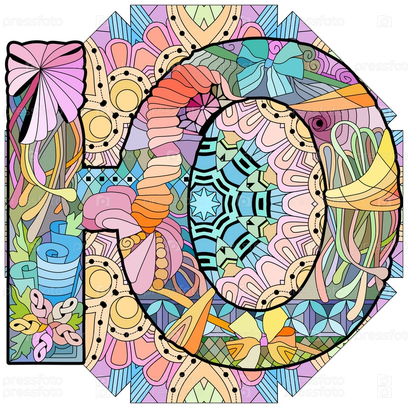 Русский алфавит Кириллица Заглавная буква Ю на мандале. Векторная иллюстрация