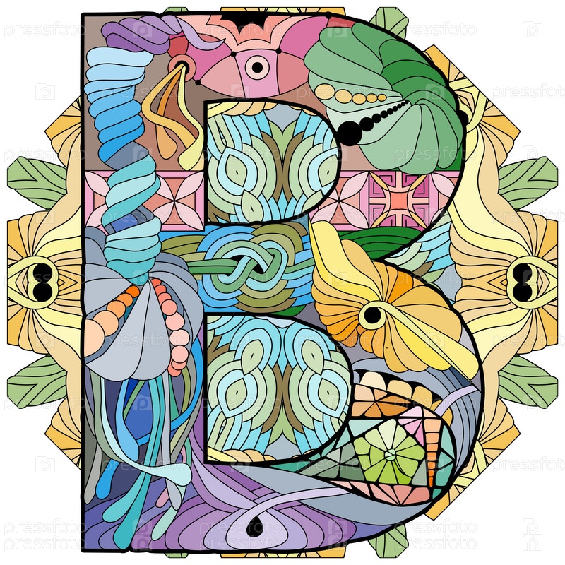 Zentangle стилизованный алфавит - буква B на мандале. векторная иллюстрация. этнический шаблон
