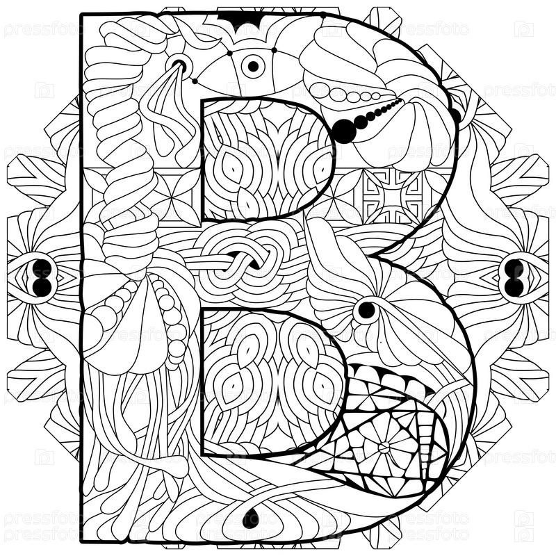Zentangle стилизованный алфавит - буква B на мандале для окраски. векторная иллюстрация. этнический узор