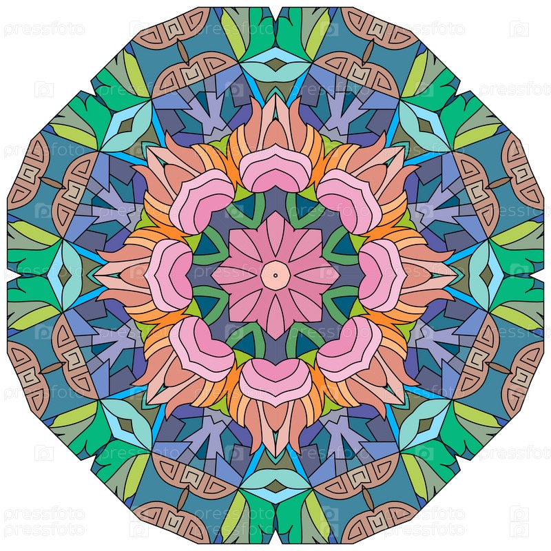 Декоративный круглый орнамент. Необычная форма цветка. Восточный вектор, схемы антистрессовой терапии. Переплетение элементов дизайна. Вектор логотипов йоги