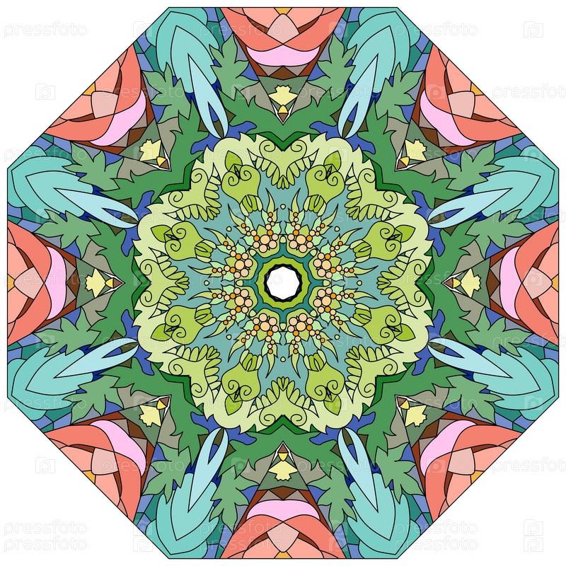 Декоративный круглый орнамент. Необычная форма цветка. Восточный вектор, схемы антистрессовой терапии. Переплетение элементов дизайна. Вектор логотипов йоги