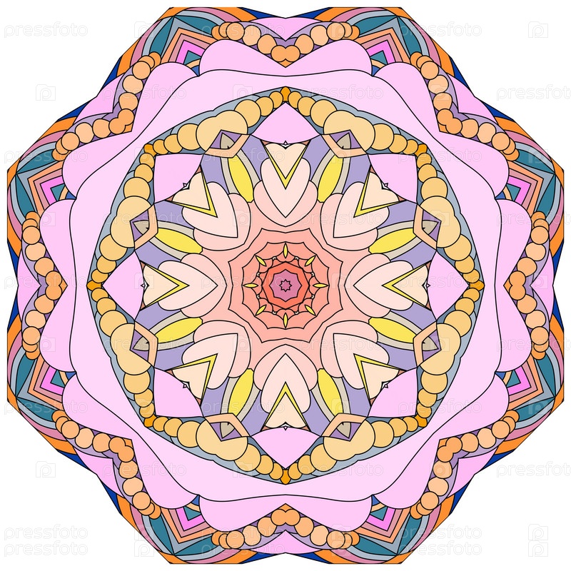 Декоративный круглый орнамент. Необычная форма цветка. Восточный вектор, схемы антистрессовой терапии. Переплетение элементов дизайна. Вектор логотипов йоги