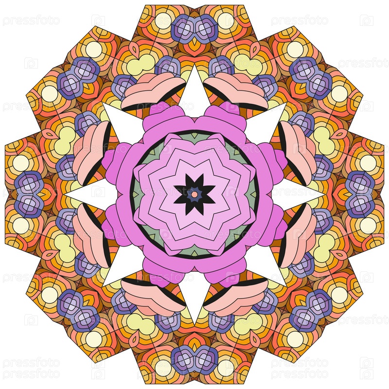 Декоративный круглый орнамент. Необычная форма цветка. Восточный вектор, схемы антистрессовой терапии. Переплетение элементов дизайна. Вектор логотипов йоги
