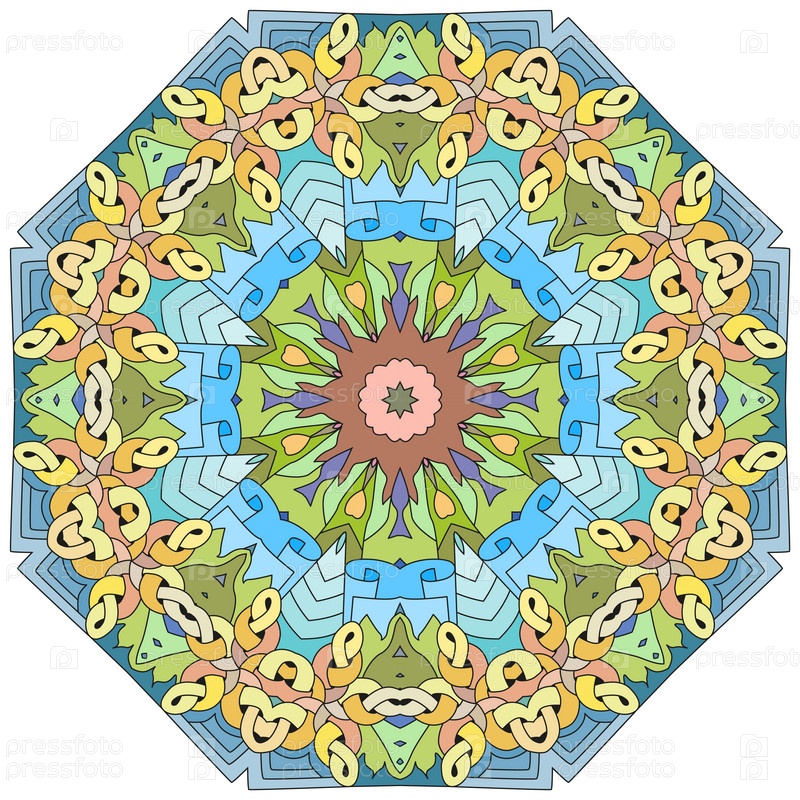 Декоративный круглый орнамент. Необычная форма цветка. Восточный вектор, схемы антистрессовой терапии. Переплетение элементов дизайна. Вектор логотипов йоги