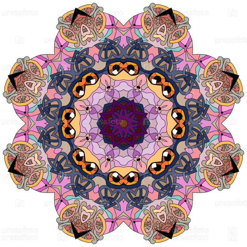 Декоративные круглые украшения. Необычная форма цветка. Восточный вектор, схемы антистрессовой терапии. Переплетение элементов дизайна. Вектор логотипов йоги