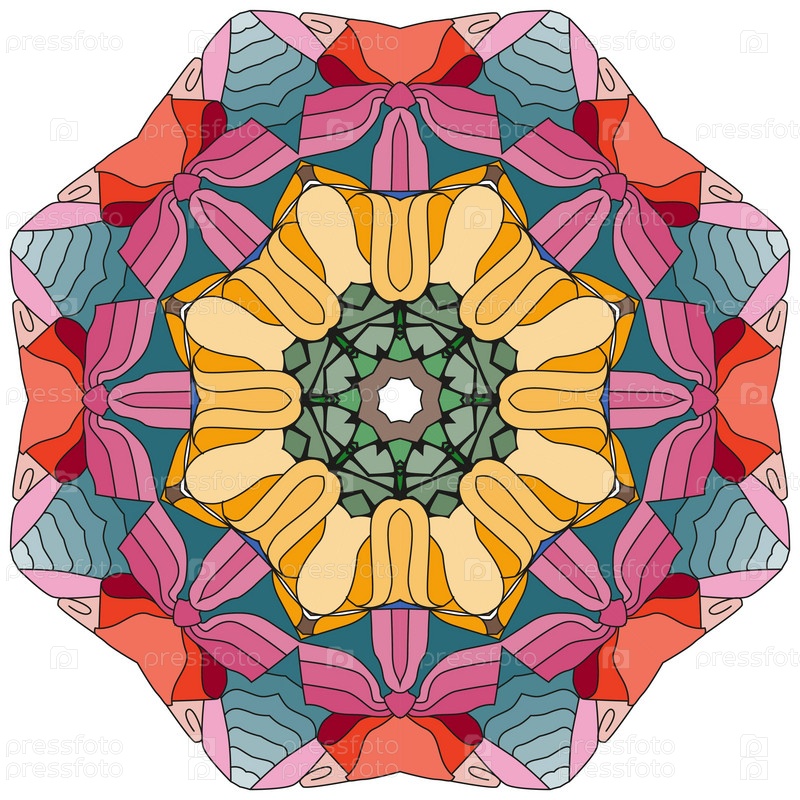Декоративный круглый орнамент. Необычная форма цветка. Восточный вектор, схемы антистрессовой терапии. Переплетение элементов дизайна. Вектор логотипов йоги