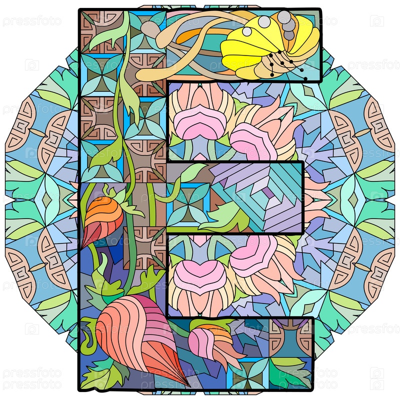 Монограмма буквы E, гравюра на мандале.Векторная иллюстрация