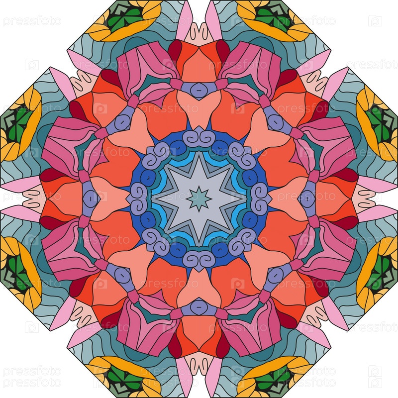 Декоративный круглый орнамент. Необычная форма цветка. Восточный вектор, схемы антистрессовой терапии. Переплетение элементов дизайна. Вектор логотипов йоги