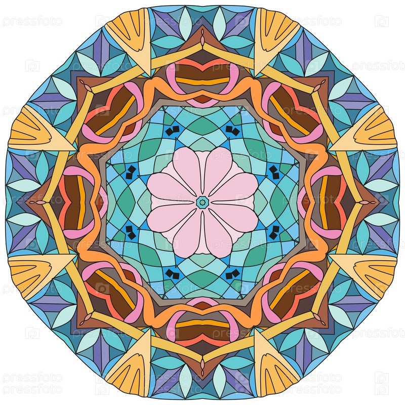 Декоративный круглый орнамент. Необычная форма цветка. Восточный вектор, схемы антистрессовой терапии. Переплетение элементов дизайна. Вектор логотипов йоги