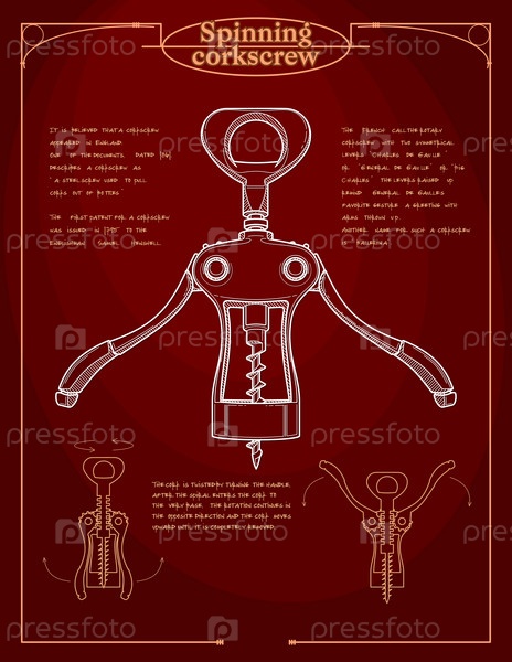 Штопор реалистичный рисунок. Схема пользования штопором. Плакат для ресторана