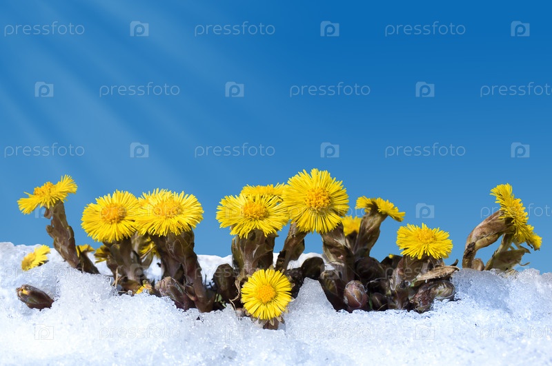 Мать-и-мачеха ранней весной в снегу