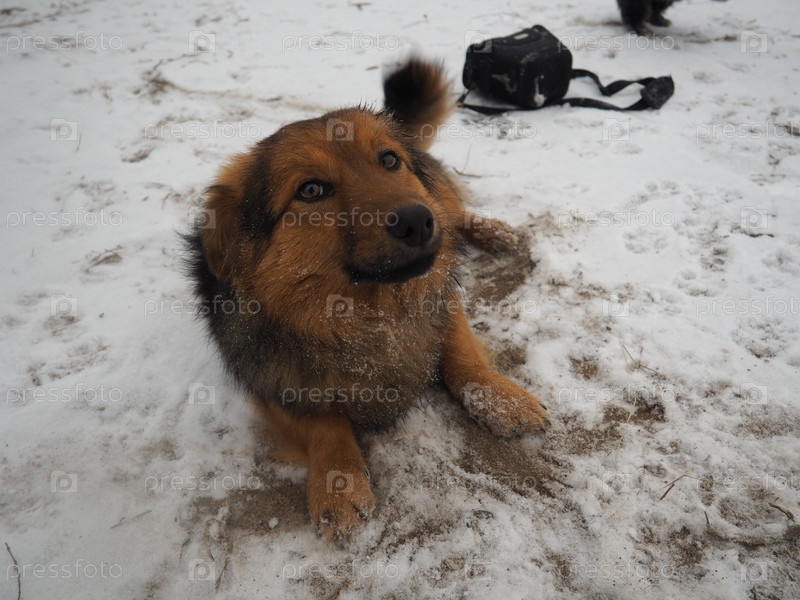 собака на снегу