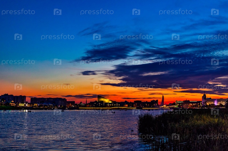 Закат над озером кабан в казани летней ночью