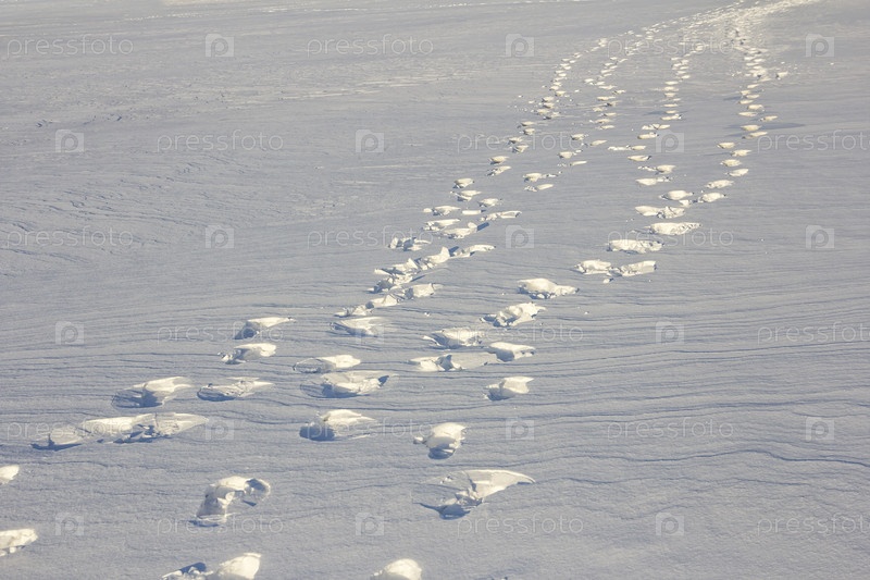 Следы пути пересекают заснеженную местность, следы на снегу, фон