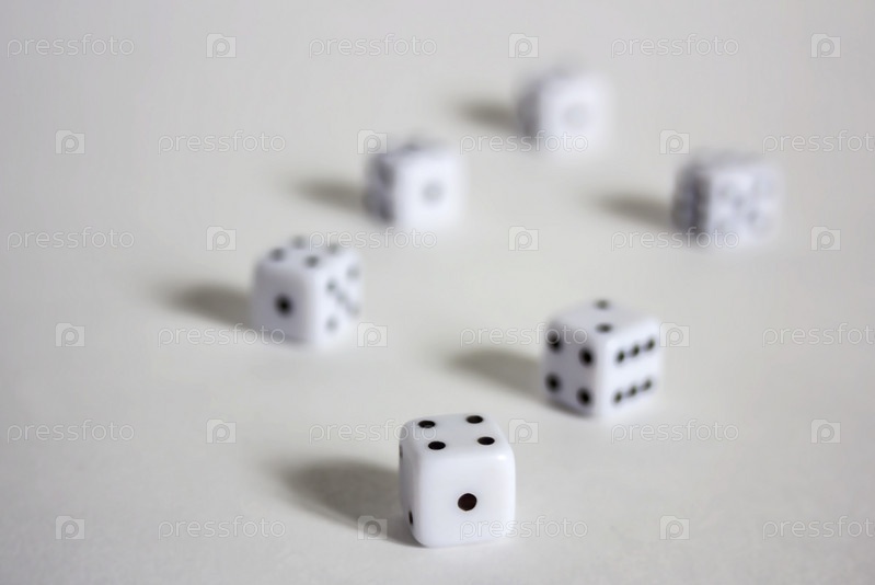 Белые кубики подряд или разбросаны по белому фону с мягким фокусом