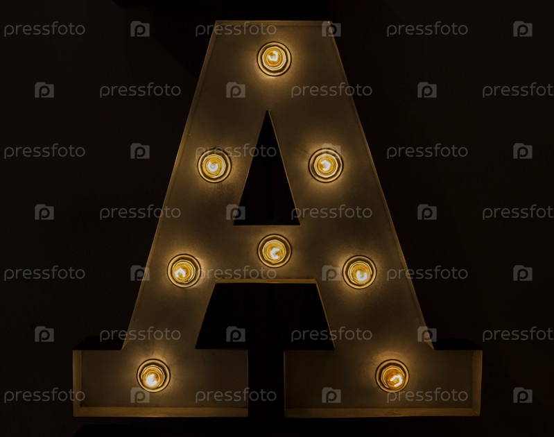 Электрическая лампочка знак первой буквы алфавита А на черном фоне