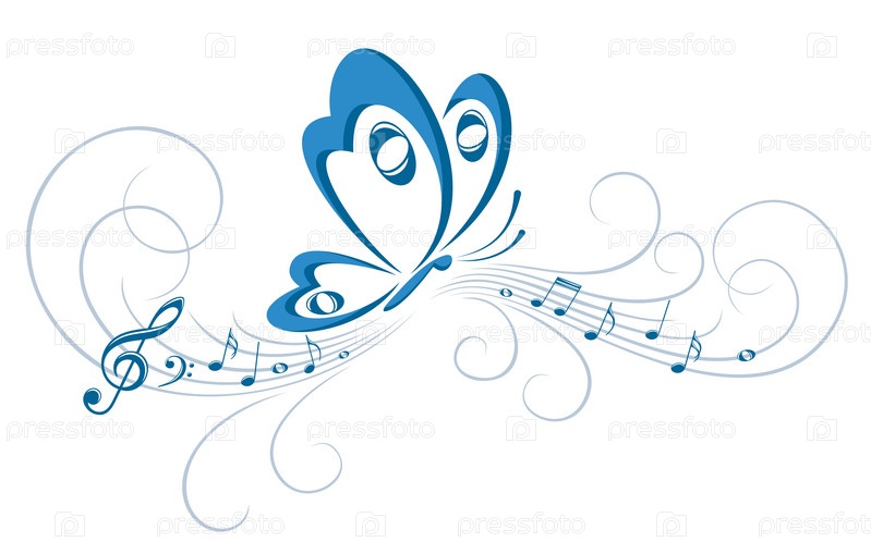 Символ летящей бабочки с музыкальными нотами