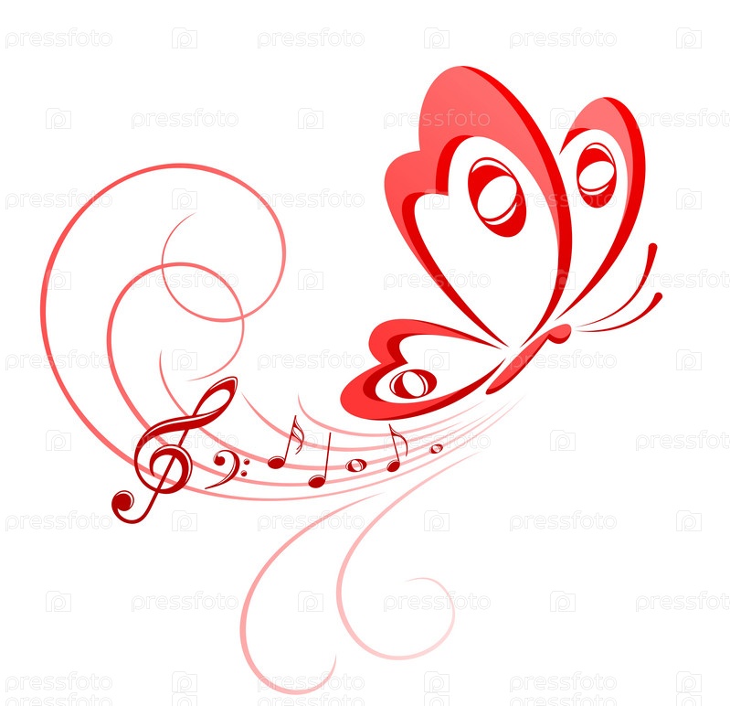 Символ летящей бабочки с музыкальными нотами