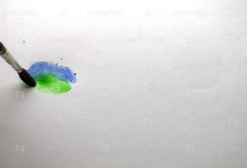 Кисть рисует синей и зеленой краской