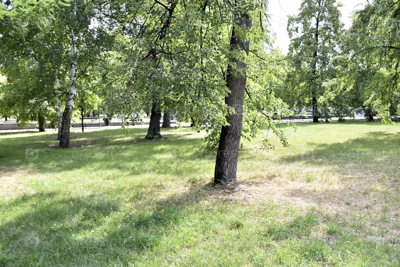 Деревья и трава в парке летом в городе