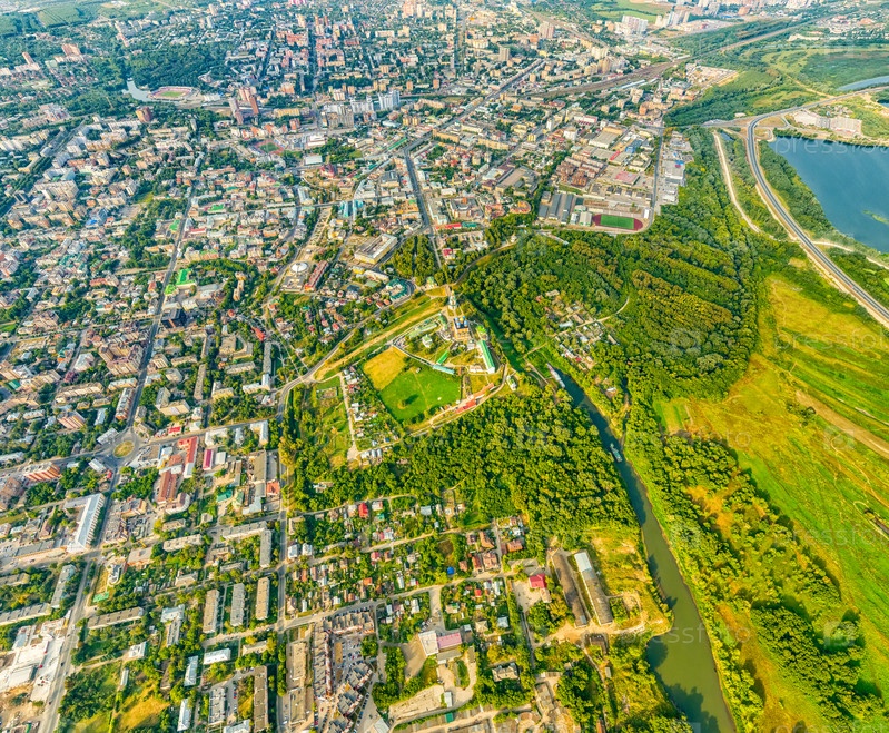 Рязань, Россия. Рязанский Кремль. Река Трубеж. С высоты птичьего полета