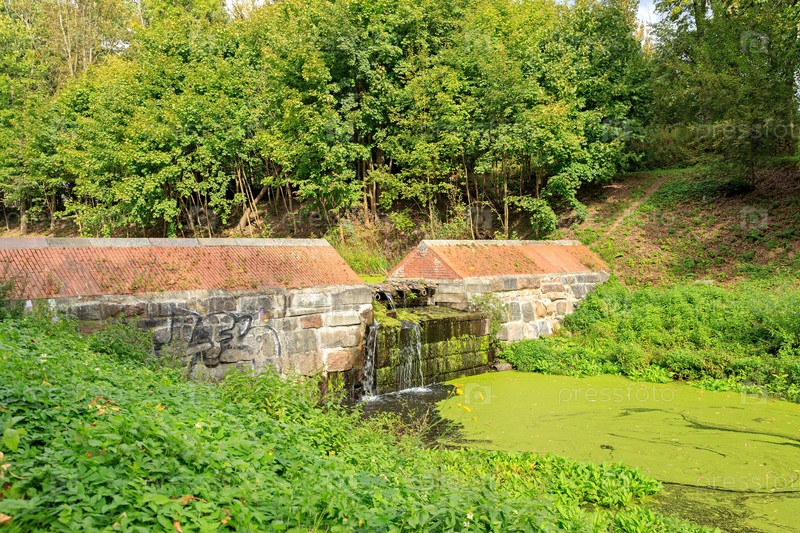Калининград, Россия. Ручей «Крепость». Шлюз. Парк вдоль стены