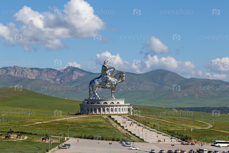 Конная статуя Чингисхана в солнечную погоду. Монголия, Улан-Батор