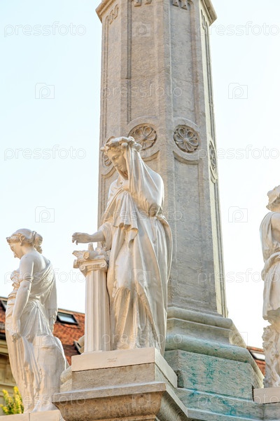Берн, Швейцария. Фонтан Бернабруннен венчает бернская фигура. Создатель скульптор Рафаэль Кристен (1811 - 1880)