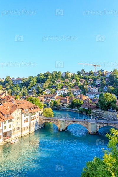 Берн, Швейцария. Река Ааре с мостом Унтерторбрюкке